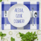 Alexa electronic device command for cooking dinner on white dinner plate and silverware.