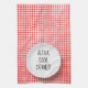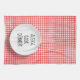 Alexa electronic device command for cooking dinner on white dinner plate and red and white faded gingham pattern.