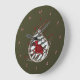 Purchased this online and it got delivered quickly. It was a present for my Dads 70th birthday. He loves clocks so decided to get him one with something written on it. Battery went in and it started working straight away. Dads had no issues with it. Printing was just how it came up online.