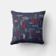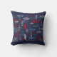 Typographic name text red, shades of grey, blue and white on a dark blue background custom pillow design. Background colour can be changed if required. Fun personalised graphic text cushion pillow. Ideal for teens and kids. Personalise with your own name, currently reads Alfie for help with personalisation and other name lengths please contact me. © Art and design by Sarah Trett for www.mylittleeden.com