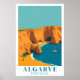 Capture the dramatic beauty of Southern Portugal's coast with this stunning Algarve Travel Art Poster! Rendered in a bold, graphic style, this piece showcases the iconic golden-orange cliffs and sea caves of the region. The contrasting colors and minimalist composition make this a powerful piece of coastal art.