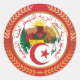 The national coat of arms of Algeria is infused into a circle shape rimmed with faux gold, and set amidst a faux gold laurel wreath.