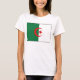 The front of this t-shirt boldly displays the Algerian flag with its distinctive red crescent and star over green and white bands. This is matched at the back by an attractive map of Algeria.