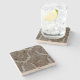 The coasters are gorgeous, a quality feel and heavy weight. They look like a precious archeological find. A rustic stone juxtaposed with a modern floral black and white print. I like the way the print goes slightly imperfect on the cut stone edges giving them a kind-of natural beauty.