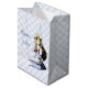 Medium periwinkle and white chequered glossy gift bag with a vintage Alice in Wonderland image, on the front, of Alice wearing the Queen of Hearts’ crown. See the entire Wonderland Gift Bag collection in the PARTY FAVORS section.