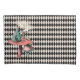 A black and white chequered background with a vintage alice and the hookah smoking caterpillar image