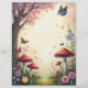 Get lost in a whimsical mushroom garden with this delightful paper featuring a vintage Alice in Wonderland scene. It showcases a charming illustration of the Cheshire Cat's head floating above toadstool mushrooms, with butterflies, flowers, and a pocket watch below. With unlimited creative possibilities, this paper is perfect for invitations, scrapbooking, junk journalling, and other personalised projects. Printed in high-quality, full-colour on thin matte paper, it's designed to bring a crisp, professional look to your personal or business mailings. Add personal photos and text for no additional upcharge, making it a versatile and memorable addition to any project.