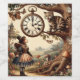 Step into the enchanting and whimsical world of Alice in Wonderland with this captivating illustration of Alice encountering the mischievous Cheshire Cat! Here, Alice, adorned in a charming, slightly anachronistic outfit with a top hat, looks up at the iconic grinning cat perched mysteriously in a gnarled, ancient tree. A prominent pocket watch hangs from the branches, hinting at the fantastical passage of time, while butterflies flutter around a landscape dotted with magical mushrooms and distant storybook architecture. This beautifully detailed and unique artwork brings a fresh, vibrant perspective to Lewis Carroll's beloved tale, perfect for lovers of fantasy, classic literature, and imaginative art.