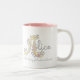 Decorative hand drawn capital A with name and meaning mug. Fun doodled A design featuring hearts and flowers and the words Alice Noble, strong yet tender and sweet. © Words and unique design by Sarah Trett. www.sarahtrett.com for www.mylittleeden.com on zazzle