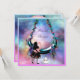 Bridal Shower invites - Whimsical, cute and beautiful, surreal Alice in Wonderland Bridal Shower invitations with a pretty black vintage silhouette of Alice carrying an elegant pink flamingo. She is stood in front of a beautiful shiny crescent moon ornament which is hanging from beautiful colourful sashes of hearts in shades of blue, purple, lilac and pink. The background is a lovely colourful purple, pink and blue clouds. There is a pretty white teapot next to Alice. Stylish, modern, chic fantasy art Bridal Shower invitations with a vintage theme. If you need any assistance customising your product please contact me through my store and I will be happy to help. Pearls and lace mat on reverse of invites by ©Hazel Kinvig-Paul www.design-a-dream.co.uk Please note: All invitations on Zazzle have flat printed images.