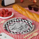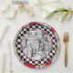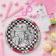 Set of eight 9” paper plates with a vintage Alice in Wonderland image of Alice in the Queen of Hearts’ courtyard in a black and white chequerboard frame on a background of playing cards on red. See matching plastic and paper coasters. See the entire Wonderland Plate collection in the FOOD/BEV | Dishes section.