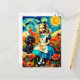 This lomographic photo features Alice from "Alice in Wonderland" accompanied by a little black dog, set in the whimsical Van Gogh-style poppy field. The image captures the vivid, slightly out-of-focus look of lomography combined with the swirling patterns and colourful, dreamy ambiance characteristic of Van Gogh's style. AI generated art combining themes of Alice in Wonderland with the Wizard of Oz