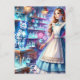 Alice in the Steampunk Apothecary With Robot Cat Postcard
