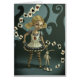 This Alice In Wonderland Picture Fairy Tale Painting is a whimsical illustration of a little girl wearing an Alice in Wonderland Costume and holding a bunny by the ear. I call this interpretation Miss Wonderland. The background is blue green and contains swirly shapes. Cards spiral around her. One of my favourite fairy tales is Alice in Wonderland.