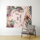 Alice in Wonderland baby shower backdrop banner with vintage Alice and friends on a vintage pink and black chequered floral background. This vintage Alice in Wonderland banner backdrop is easily customised with the text of your choice, or you can delete the text.