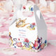 Alice in wonderland baby shower tea party thank you favours personalised favour box baby shower favours, modern watercolor tea party themed bridal shower, cups and sauces, tea pots and flowers