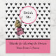 Add a bit of Alice in Wonderland whimsy with this heart-centred design. The background has tiny black hearts, and then Alice in pink is reaching towards the words "Drink Me." She's perched on a colorblock of pink, with the text "Thanks for Sharing the Dream," plus a place to include your name or your event's name. The text is editable as needed, as long as it fits the space.
