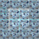 Alice in Wonderland Characters on Blue and Silver Fabric. Patterns include Alice, Queen of Hearts, Knave of Hearts, Duchess, Mad Hatter, White Rabbit, Cheshire Cat, Tweedledum-Tweedledee, watch, tea pot, tea cup and flowers.