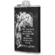 The flask itself is fine. It’s a cheap flask, obviously bought in bulk, however am prepared to overlook that. Given that it is a personalized item, I would have liked to have seen gift boxing instead of the generic packaging. Terrible printing, and/or quality. It’s a cheap, tacky vinyl. It is not cut straight and is also applied in a way that it is overhanging the bottom, causing the glue to catch on items and it will eventually roll and tear, damaging the wrap.