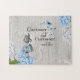 A lovely vintage Alice in Wonderland in black and white and her familiar blue dress appears on this fun and nostalgic design with the quotation, "Curiouser and curiouser! cried Alice", vintage blue butterflies and beautiful blue and white vintage hydrangeas on a soft white toned rustic wood background to make a lovely floral literary themed jigsaw puzzle.