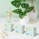 Pretty Alice in Wonderland theme birthday party favour box for a child's birthday. Little girl Alice in her blue dress and the Mad Hatter decorate this beautiful blue and yellow striped box.