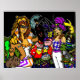 dorothys wearing a fur coat made of the cowardly lion and carrying a toto purse... mad hatters on the right pouring tea out of tin mans head... cheshire cat's heads a fishbowl and his eyes are fish and his mouths an eel... there are a few more characters to look for