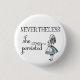 Alice, the girl from the classic children's book Alice in Wonderland, with her arms crossed and wearing her iconic blue dress, appears with the words "NEVERTHELESS, she persisted" on this great statement making literary themed button.