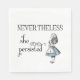 Alice the girl from the classic children's book Alice in Wonderland, with her arms crossed and wearing her iconic blue dress, appears with the words "NEVERTHELESS she persisted" on this great statement making literary themed paper napkins for dining and party ware.