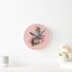 Alice in Wonderland on Pink and Gold Glitter Round Clock
