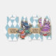 This whimsical gift box features a colourful Alice in Wonderland fairytale par-tea tea party theme. An image of the Cheshire Cat is pictured on one side of the box, accented with a gold glitter design. The Mad Hatter's hat and a stack of teacups is placed on the opposite side. The background features a pale blue harlequin pattern.