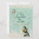 Alice in Wonderland Very Important Date Wedding Save the Date in teal blue and lace.