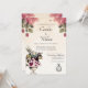 Alice in Wonderland Wedding Invitation features pink roses, the rabbit, the clock, a butterfly and Alice. Elegant Alice in Wonderland wedding invitation.