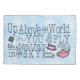 The quote on this pretty, whimsical design for the avid reader comes from a Lewis Carroll poem in his book, "Alice in Wonderland." The Mad Hatter recites it at the tea party: Up above the world you fly / Like a tea-tray in the sky. The fancy typography design features a teacup, a teapot / kettle and a tea bag, complete with swirling steam - all floating on a light blue cloudy sky background.