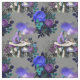 This Alice in Wonderland inspired design showcases the caterpillar sitting with Alice with bright blue and purple roses over a light grey background.