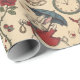 Alice inspired white rabbit, clocks and roses wrapping paper