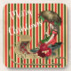 Alice in a sled on a striped background vintage inspired Merry Christmas design
