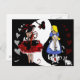 Two Alices - dark and sultry gothic lolita and a prim, pure original maid - look into their reflection from each side of a Yin Yang symbol. Framed by red and silver hearts, a white rabbit and the Cheshire cat sit at their feet.