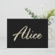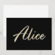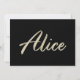A beautiful and elegant card / greeting card / gift card / birthday card in handwriting liquid white gold design for Alice.