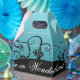 Gable-style favour box with an image of fun black vines on ombre blue and “Alice’s Adventure in Wonderland” in white script at the bottom. See the entire Wonderland Favour Box collection in the PARTY FAVORS section.