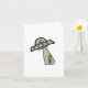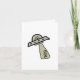 Alien Abduction design features alien pilot in flying saucer sending beam down to capture earthling for inspection and probing.