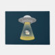 Funny cow alien abduction vector illustration clipart toon icon, customisable background colour and text.