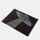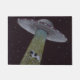 A colour pencil drawing of an unfortunate cow being abducted by aliens in a flying saucer on a dark, starry night. The frightened herd huddles in the background.