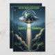 Alien Abduction UFO Blue Clouds Birthday Party Invitation