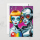 AI generated art of a beautiful alien woman and the silver robot that loves her scifi lgbtq art