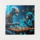 Alien and Monkey Playing Chess with Coffee Tapestry
