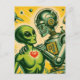 Alien and Robot Retro Love Postcard