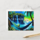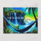 Cute Alien on a tropical Beach relaxing in a hammock. Wish you were here postcard