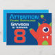Graphic boys alien space party invite. Perfect to invite your son's favourite earthlings to his birthday bash. Customise with your own details. Uniquely designed and illustrated by Sarah Trett.