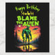 A green, muscular alien stands powerfully under a radiant, mystical sunset. Smaller alien figures linger nearby, enhancing the scene's intrigue. The vibrant sky reflects beautifully in shimmering water, creating a whimsical, otherworldly atmosphere. This captivating blend of colours and extraterrestrial elements evokes wonder and fuels curiosity about alien encounters.