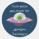 This fun sticker featuring a green alien flying a space ship through space is perfect to use as a book plate to identify your books. You can also remove the customisable text to have a plain alien sticker if you choose.